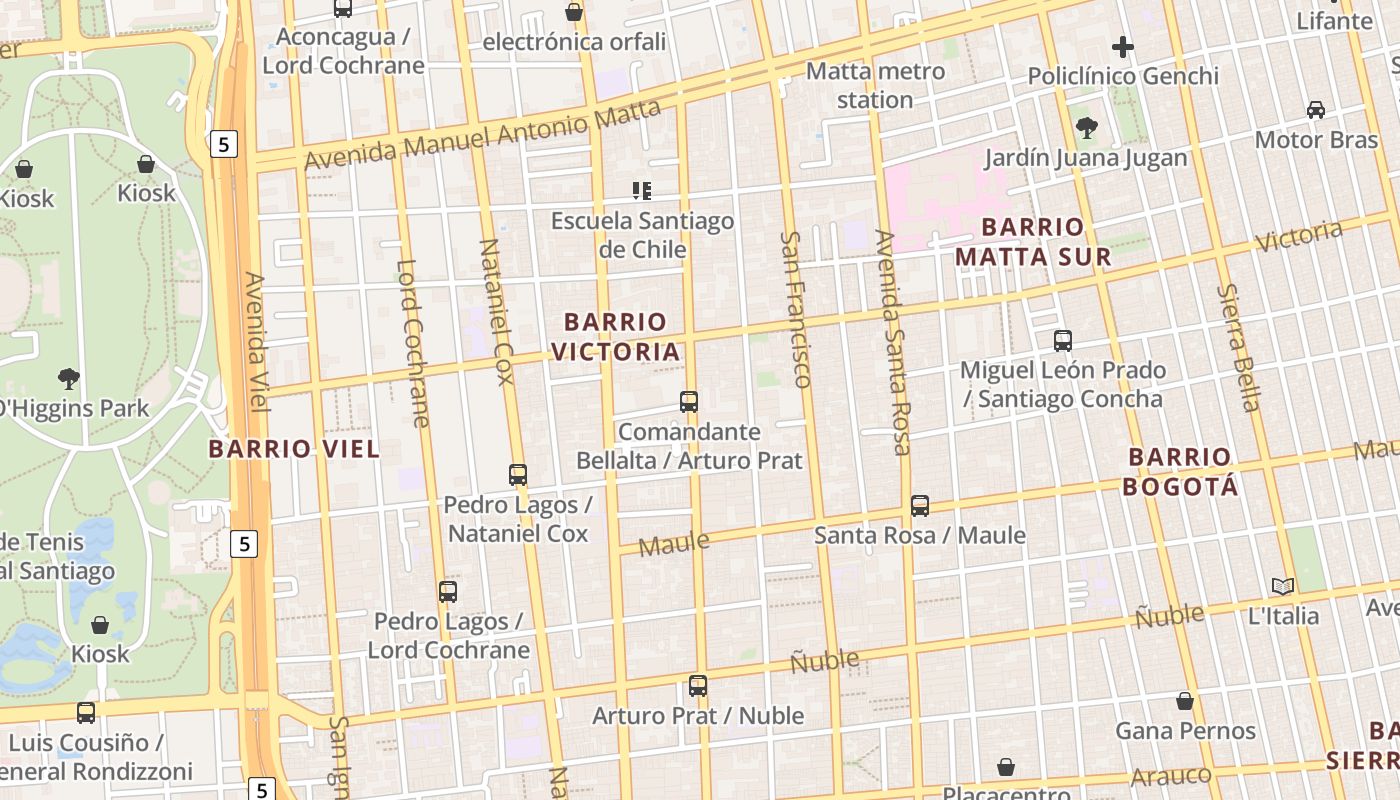 Puedes llegar al Centro Cultural Palacio de la Moneda y Plaza de la Ciudadanía en pocos minutos en coche, mientras que la Intendencia Metropolitana de Santiago está justo al lado del apartamento. El Parque O'Higgins está a 1 km de este apartamento, mientras que la estación de autobuses San Diego / Manuel Antonio Matta está a muy poca distancia de la propiedad.